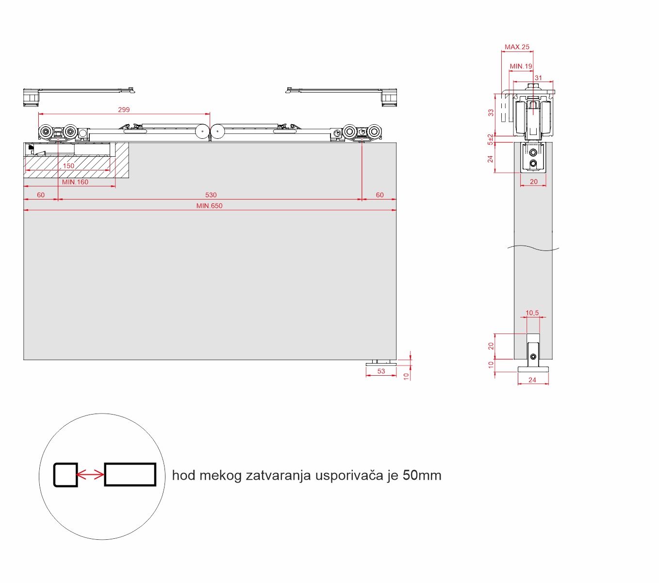 Minimalna debljina vrata je 30mm, a maksimalna težine je do 80kg.