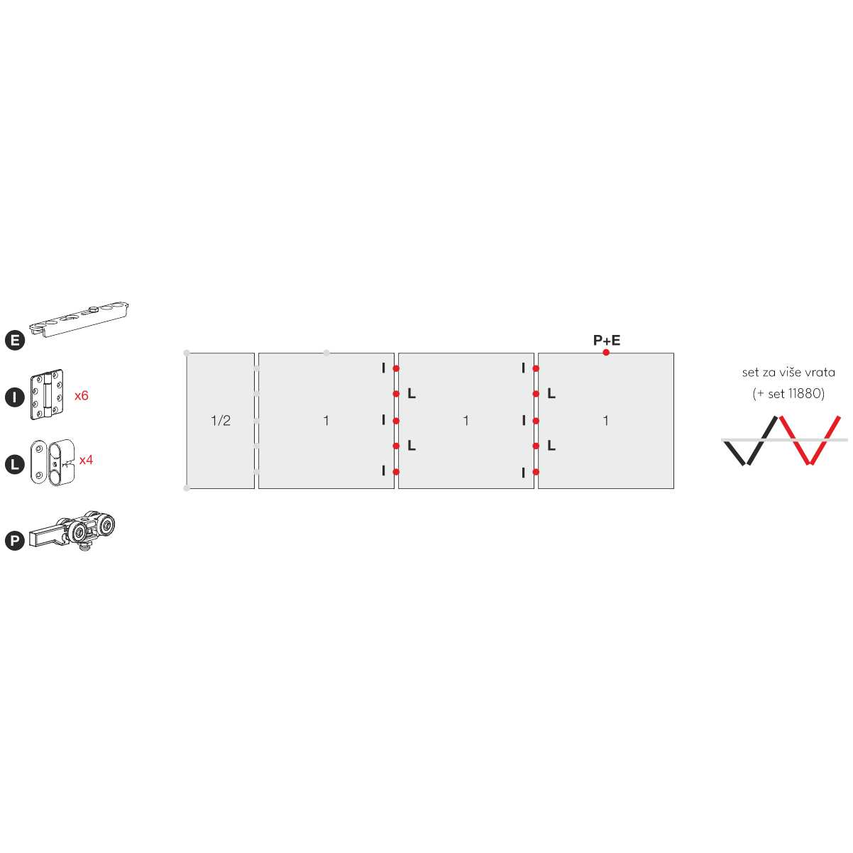 Set namenjen za više vrata (do 4 krila)