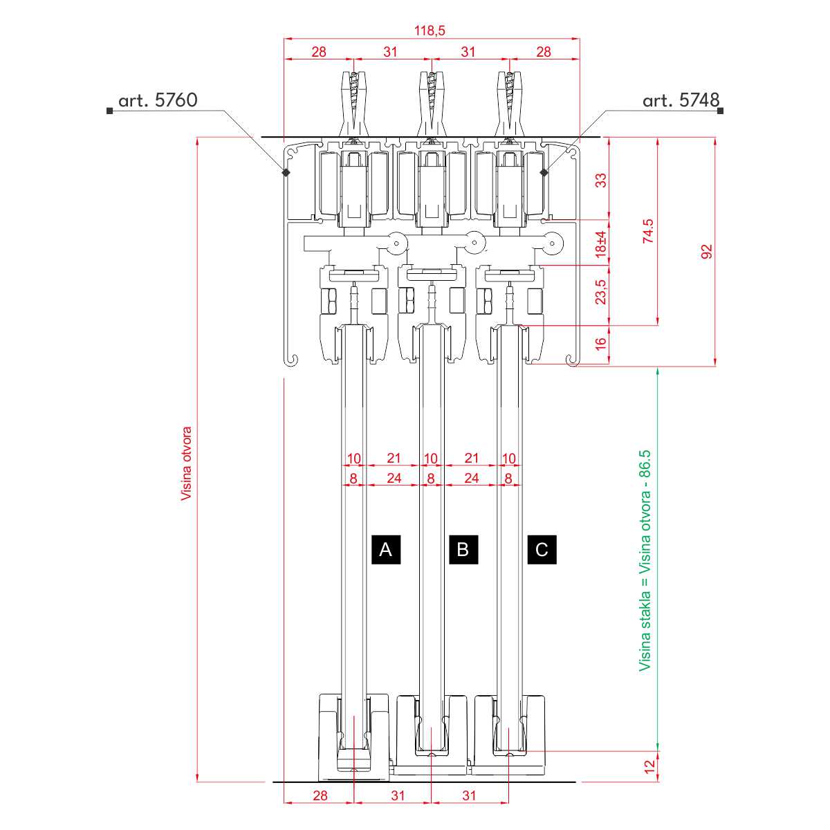 Set se koristi za izradu staklenih vrata koja povlače druga vrata prilikom kretanja.