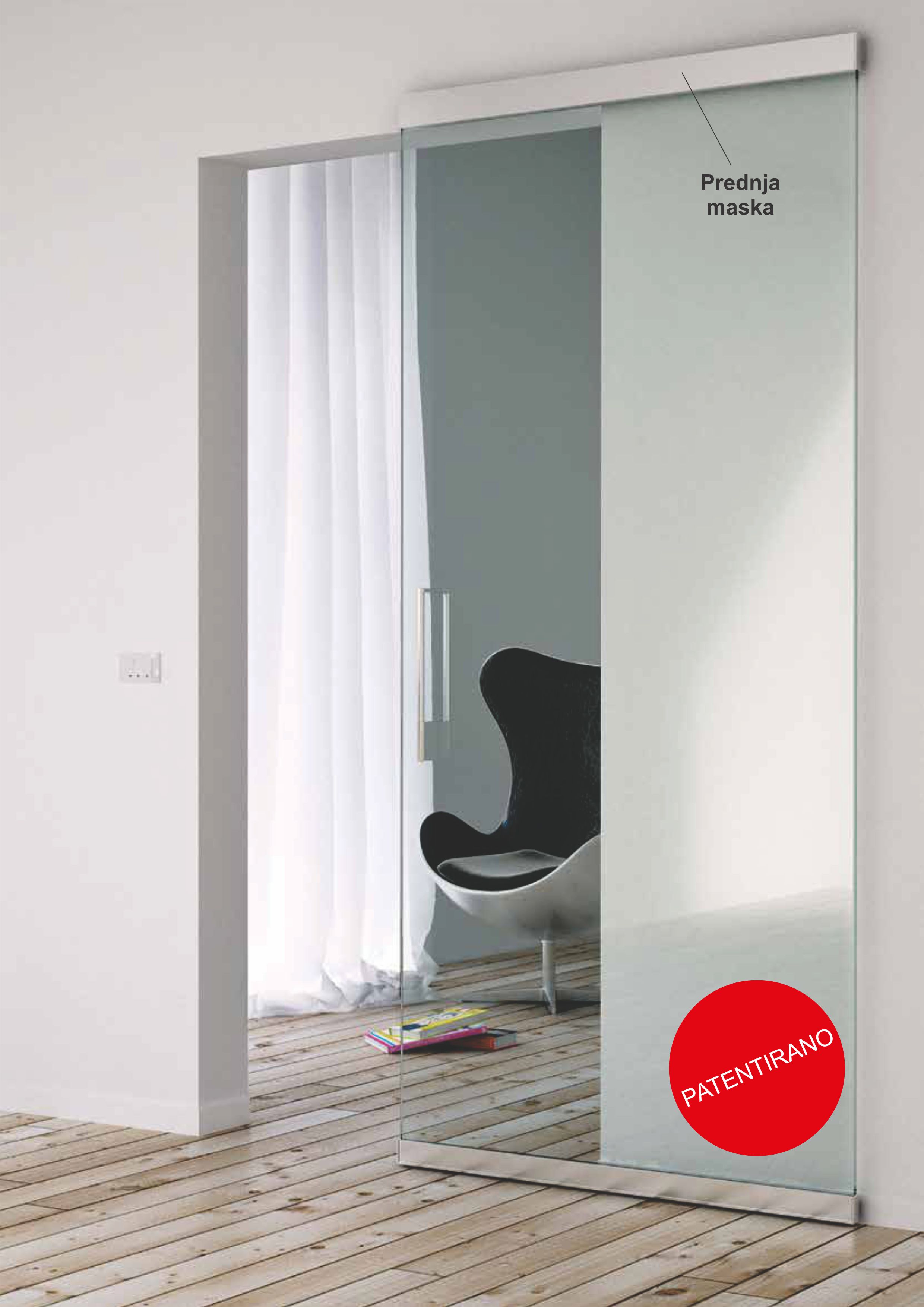 Magic sistem za pregradna staklena vrata do 80kg - sa dekorativnim nitnama Magic nevidljivi klizni sistem za izradu staklenih pregradnih vrata za sve tipove prostorija.