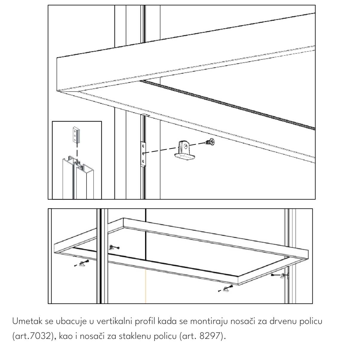 Koristi se za postavljenje nosača za drvene i staklene police, za montažu šarki na vertiklani profil za otvorene garderobere (art. 6723).