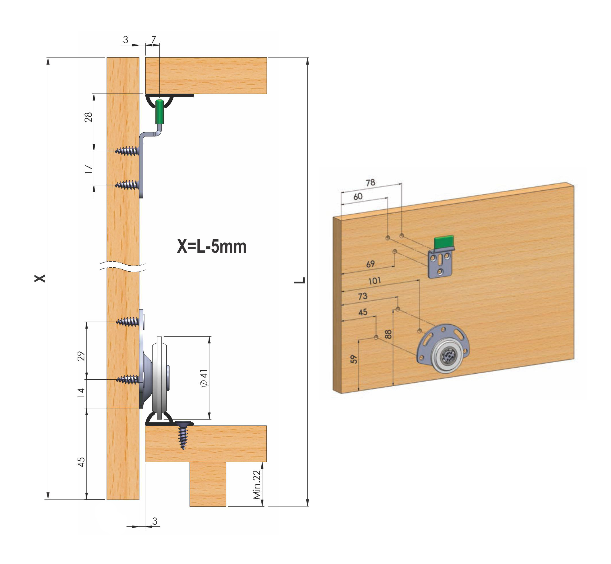 Mehanizam se koristi kada je na korpusu potrebno ugraditi samo jedna vrata.