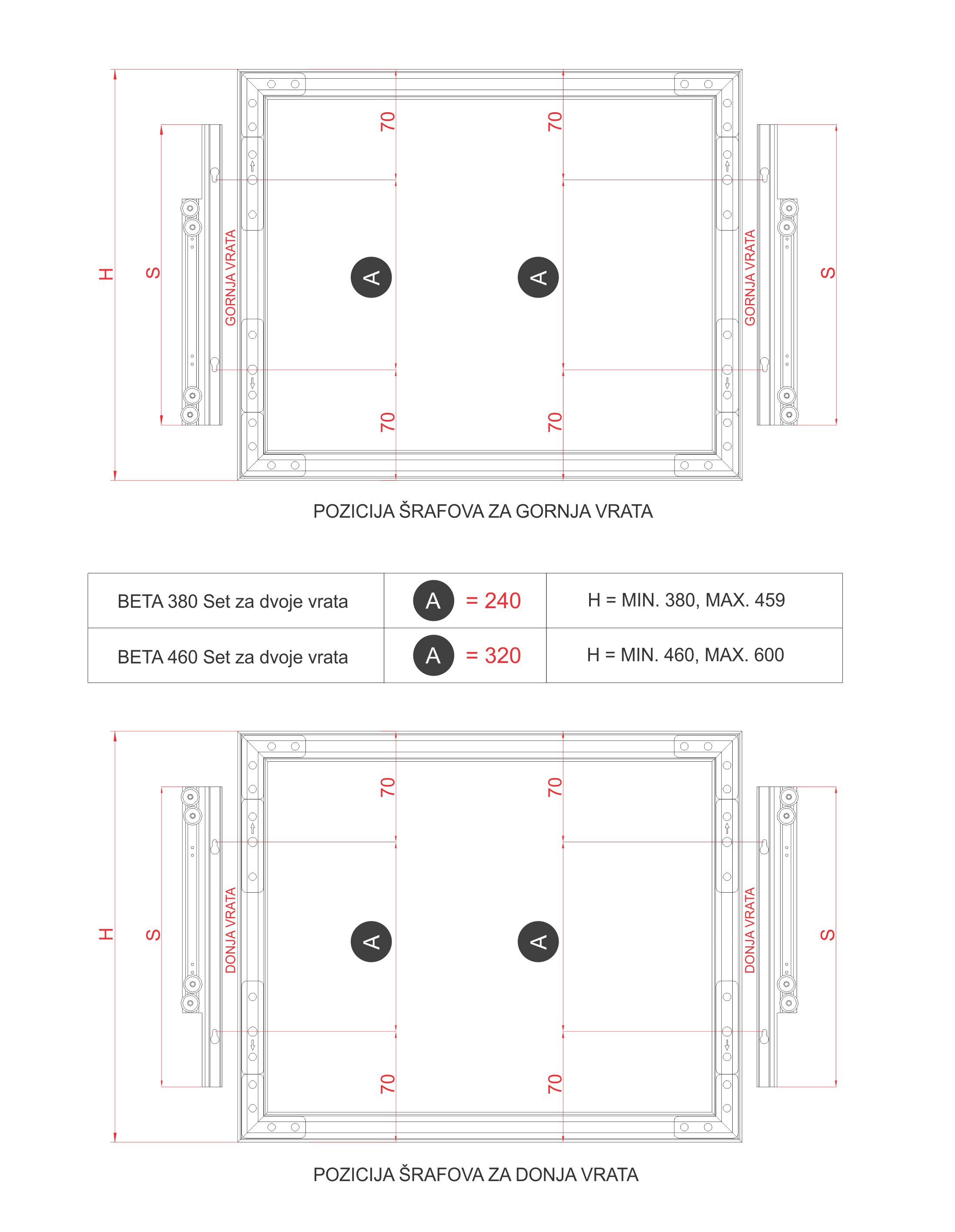 Mehanizam Beta 460 namenjen je za klizna vrata minimalne visine 460mm i maksimalne visine 600mm.
