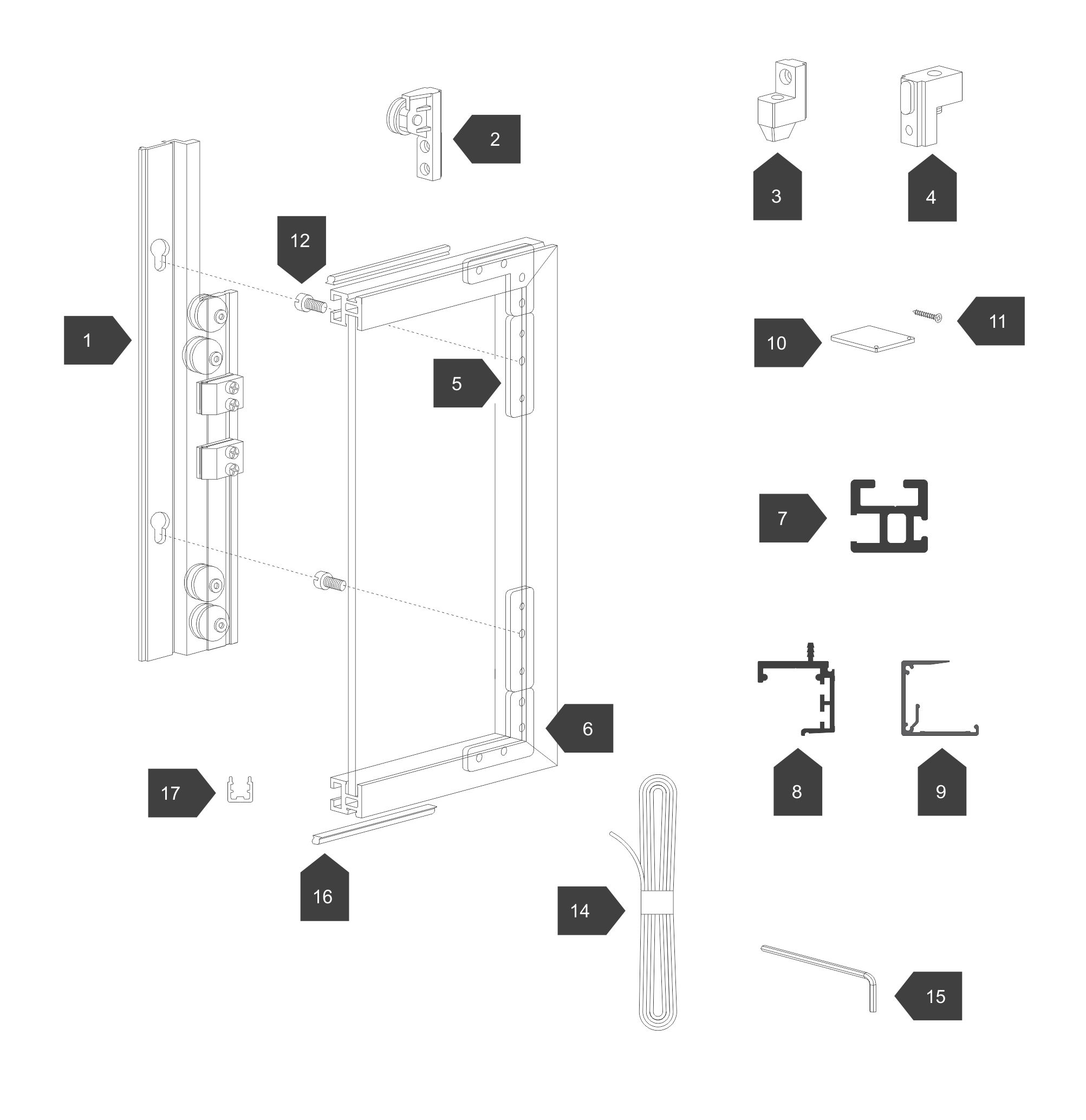 Klizni mehanizam BETA 460 koristi se kada je potrebno napraviti staklena klizna vrata debljine 4mm sa sinhronizovanim vertikalnim otvaranjem i zatvaranjem.