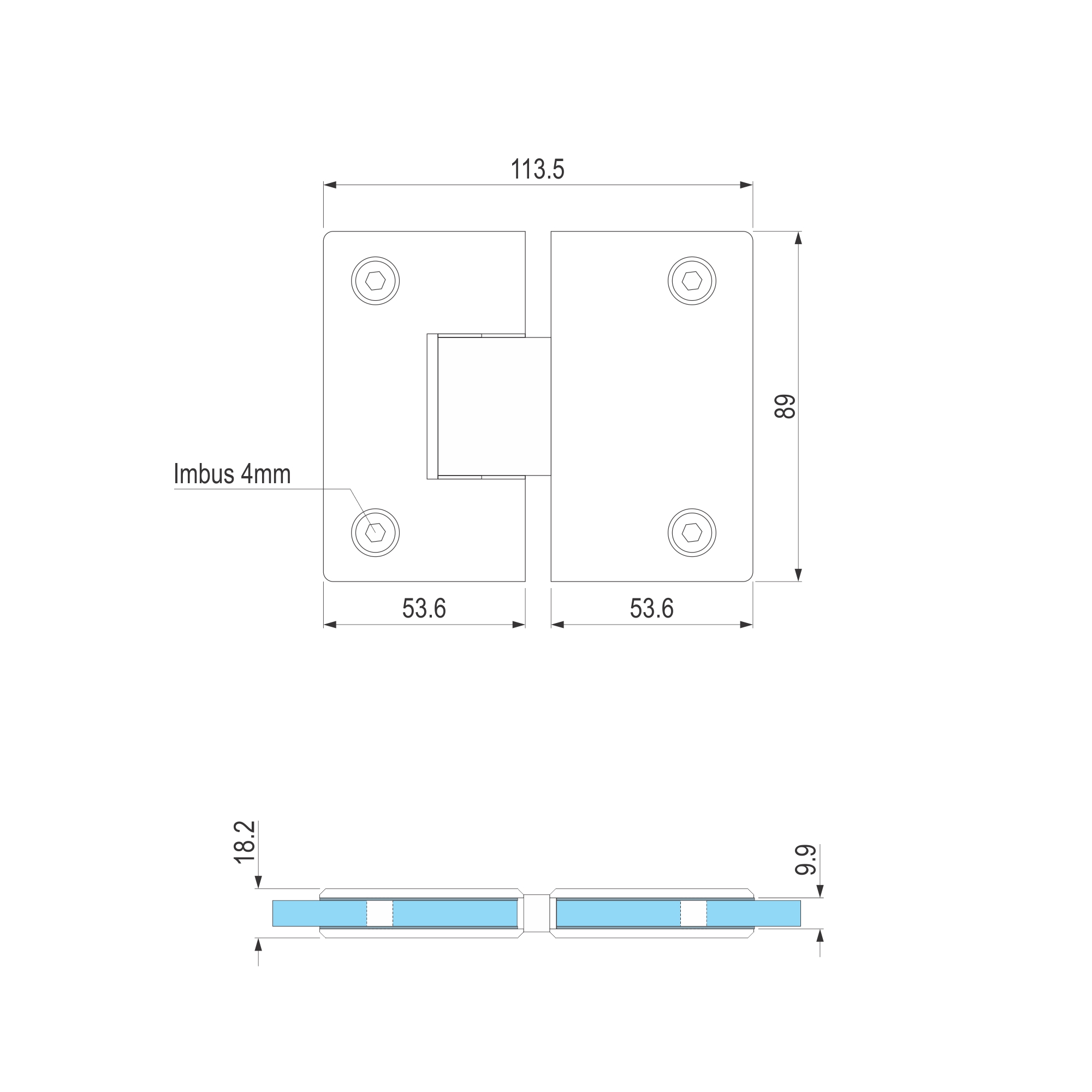 TK šarka 180° je namenjena za sigurnosno (kaljeno) staklo: 6, 8 i 10mm debljine.