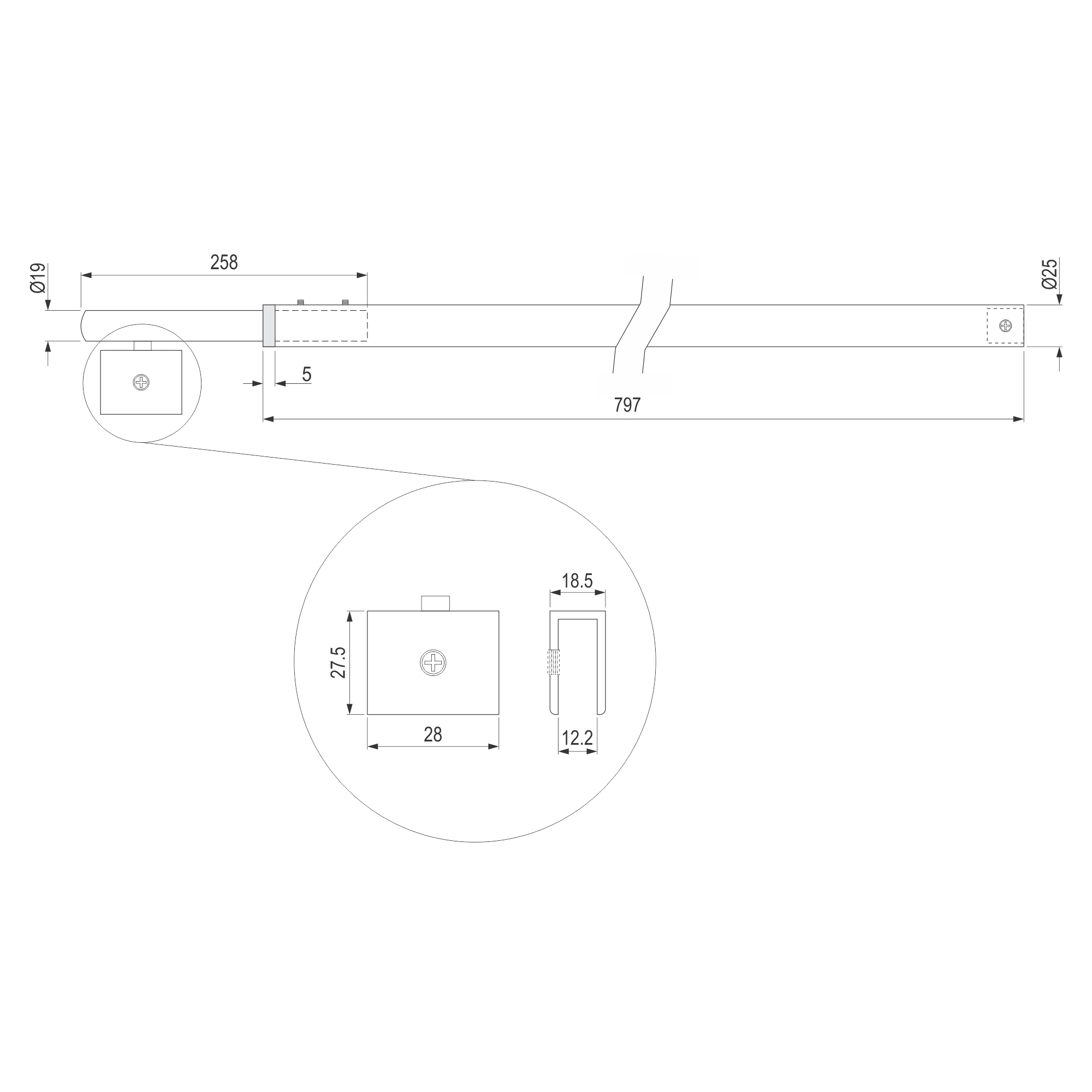 TK teleskopski nosač se koristi za stabilizaciju pozicije fiksnog staklenog dela tuš kabine.