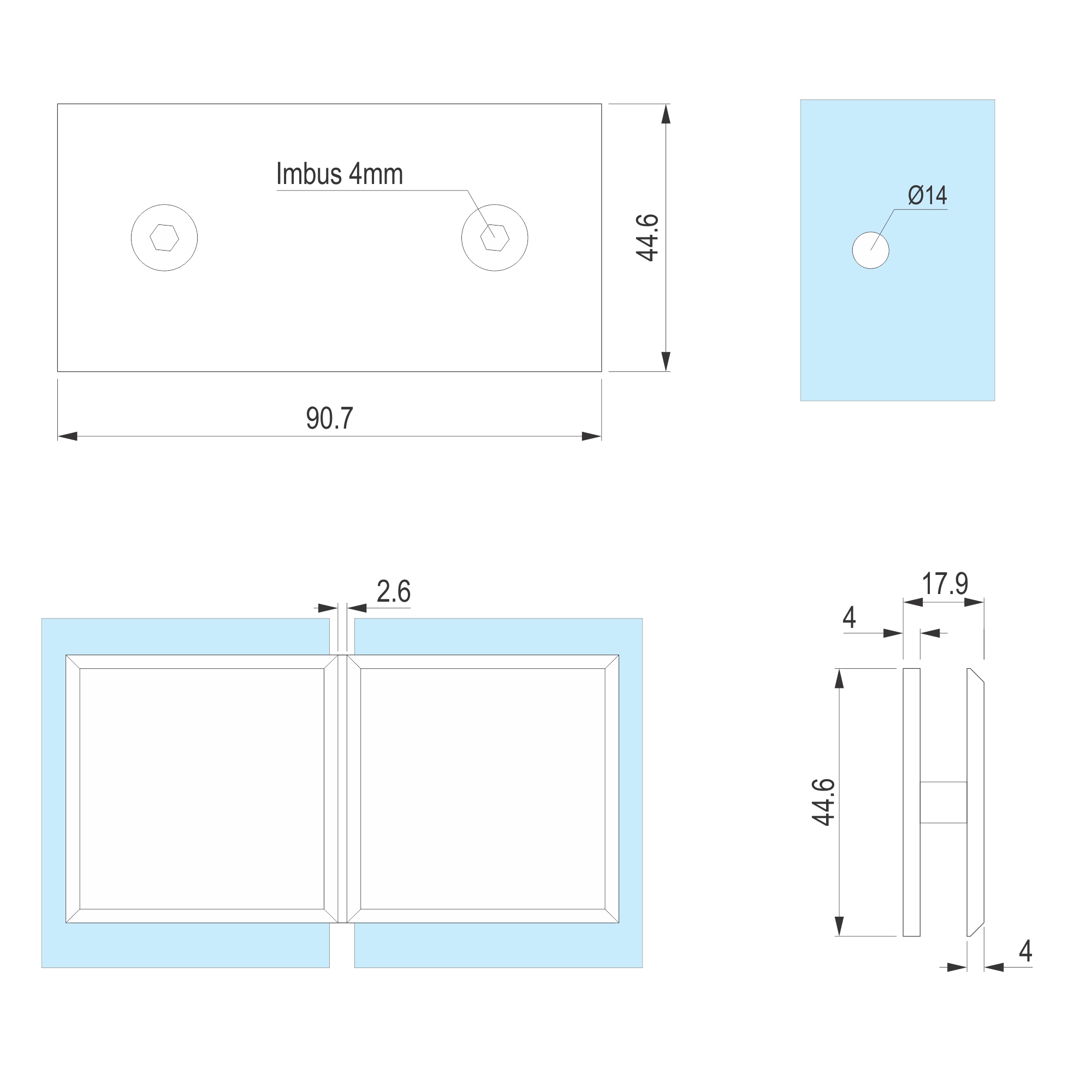 TK fiksna spojnica se koristi za spoj dve staklene ispune u ravni.