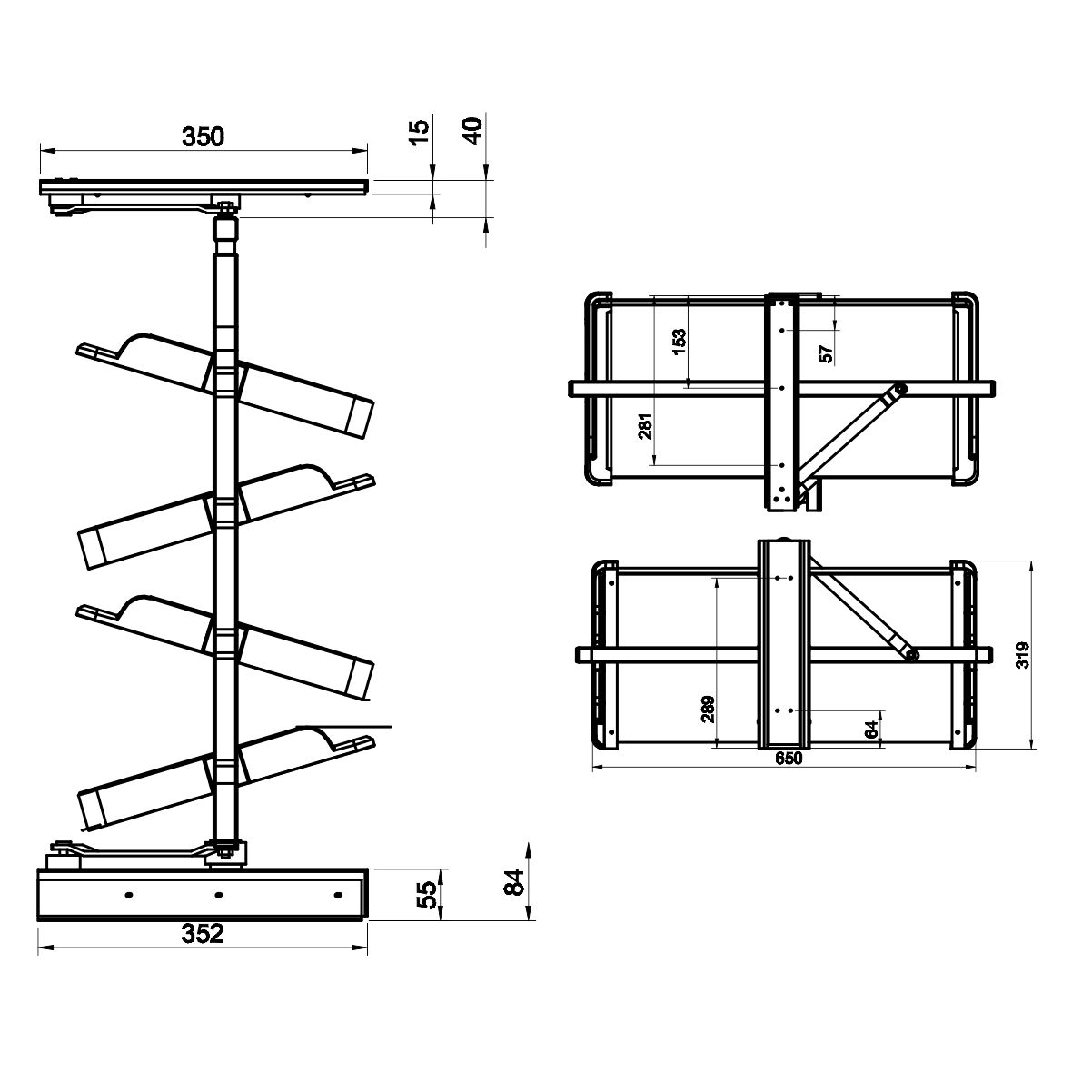 Cipelarnik se rotira oko svoje ose i montira se na pod i plafon korpusa.