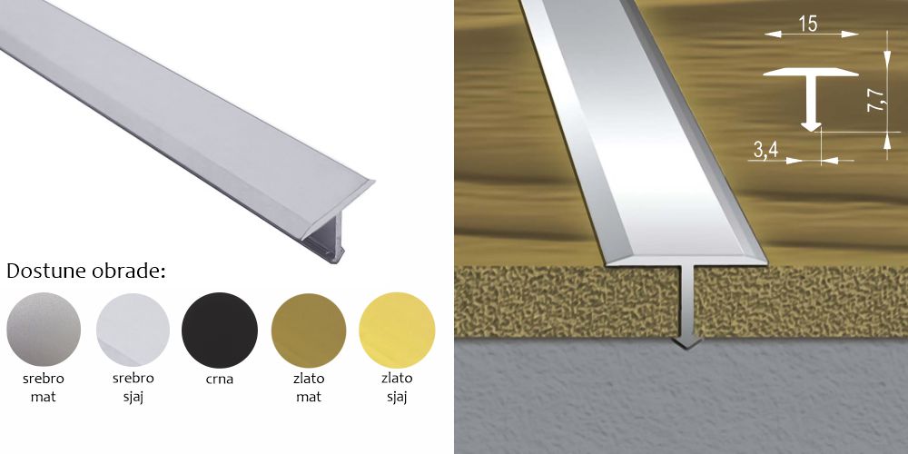 Dekorativni T profil LIN 4337 koristi se za spoj podova u istom nivou.